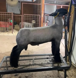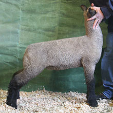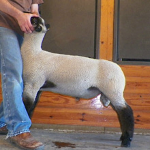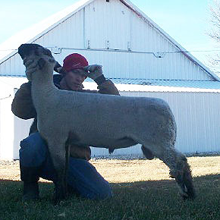 A major impression was left on us after attending the 2011 Midwest Stud Ram Sale as we viewed and bid on a young buck lamb consigned by Hays Brothers of Kansas. "Game Face" was a ram that I thought was not only right for the times but was structurally put together better than most of the more mature sheep in the barn. I was excited when we received word the following spring that Matt had another individual that put together the same design, structure, and amount of muscle..and as a result, we hauled "Peterbilt" home with us Corp weekend. "Peterbilt's" combination of look and eye appeal coexist with the overall amount of power and muscle put together in a hard handling package that I feel will make some great show wethers. His lambs have started to hit the ground and are due to make the same sort of impression that led us down this road. |