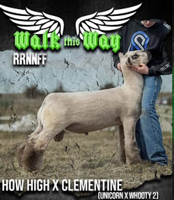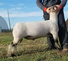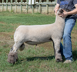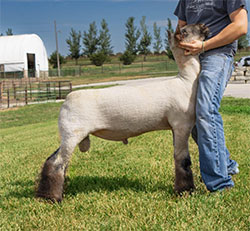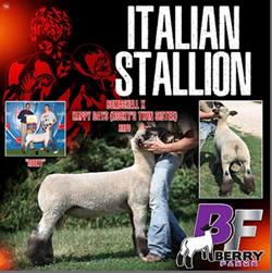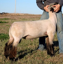 His name was derived from the lamb picture John put on his website and seeing him in person only solidified my decision to bring this buck back home to Iowa. If you dig into the genetics on this guy you will find on the top side multiple shots of Composure, Protocol, Trademark and 277 bloodlines, the bottom side is loaded with Marcantel genetics that I feel have put together a ram that can continue our tradition of making great show wethers. Eye Candy is in line with today’s trend, he isn’t just fuzzy legged but also massive in his bone and foot size. The muscle shape that he displayed as a baby and throughout is set forth with the type of velvety hided touch that is missing in most sheep today. His loin edge is impeccable and his moderate size matches up with our bigger framed ewes. I also believe that the female offspring out of this ram will impact our flock much the same way that the Primetime and X-box ewes have. |